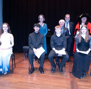 The Final of the 2024/25 competition was held on January 24th 2025 in the Lantern Hall at the Beacon, Bristol. Six instrumentalists, performing on piano, violin, cello, trumpet/flugelhorn, flute and oboe, provided the packed audience with an exciting and closely fought contest as well as a concert of a quite remarkable standard.